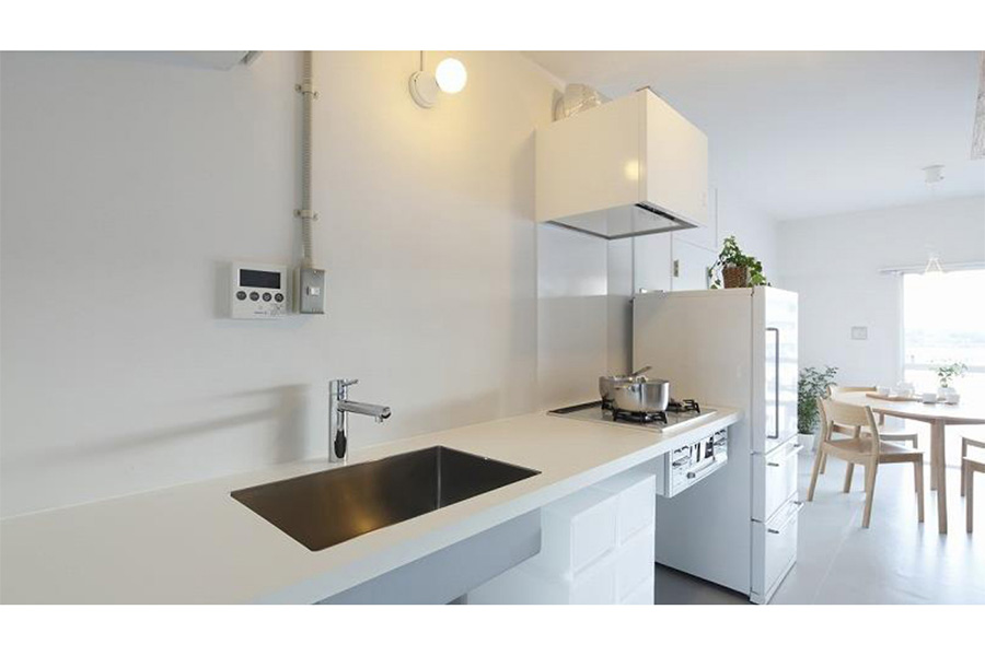 - 一方で、変えなくてはいけないキッチンなどは変えていきました。こちらはURさんと無印良品で共同開発したシンプルな真っ白いキッチンですが、こういった商品なども開発していきました。