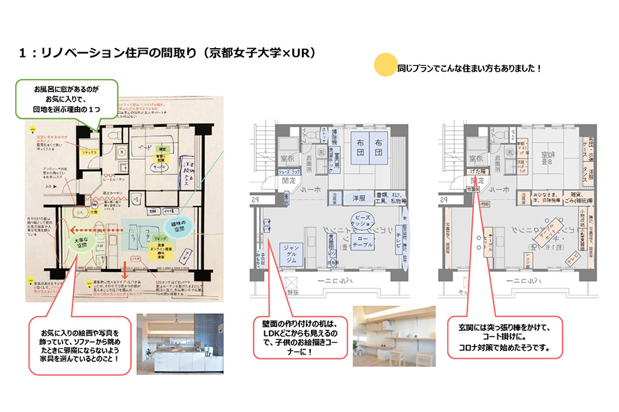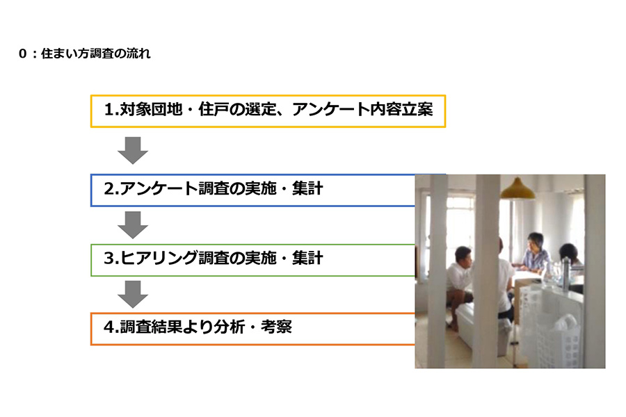 そのうえで、団地の印象や住まい方・暮らし方、家の間取り、家具のレイアウトなどについてアンケートを行いました。その後、ご協力いただける方にヒアリング調査を実施し、毎回テーマに沿って結果をまとめています。