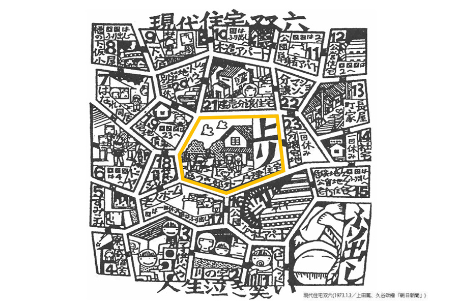 この「住まい方すごろく」には元ネタがありまして、1973年に上田篤さんという建築の方が発表された「現代住宅すごろく」というものが、当時の住まいの考え方を如実に示しています。