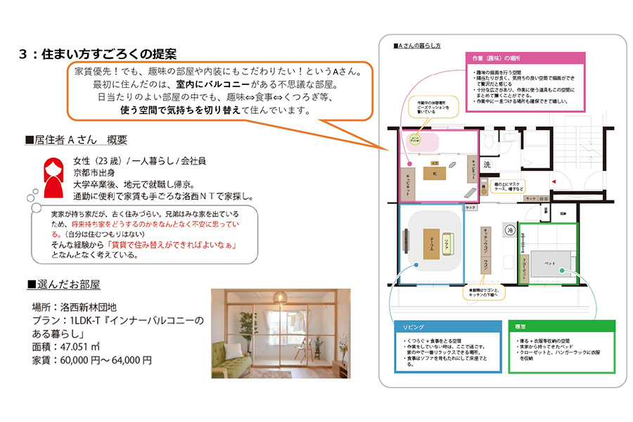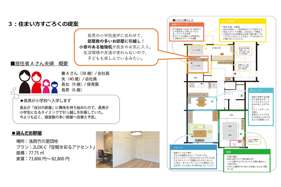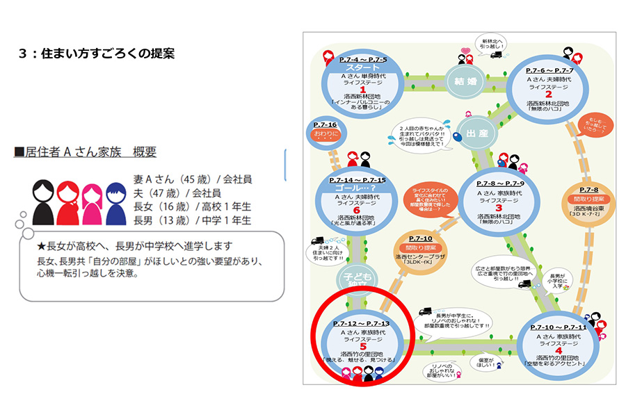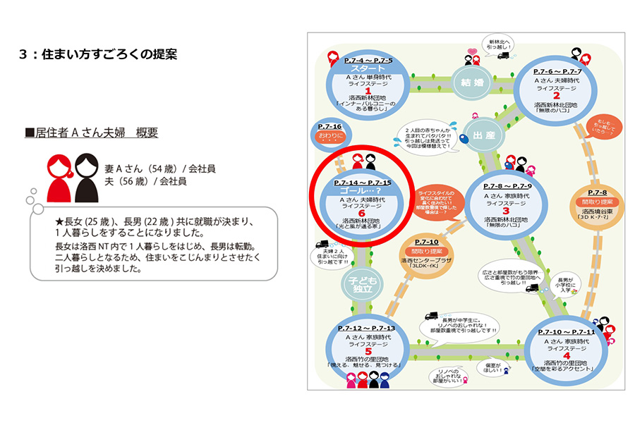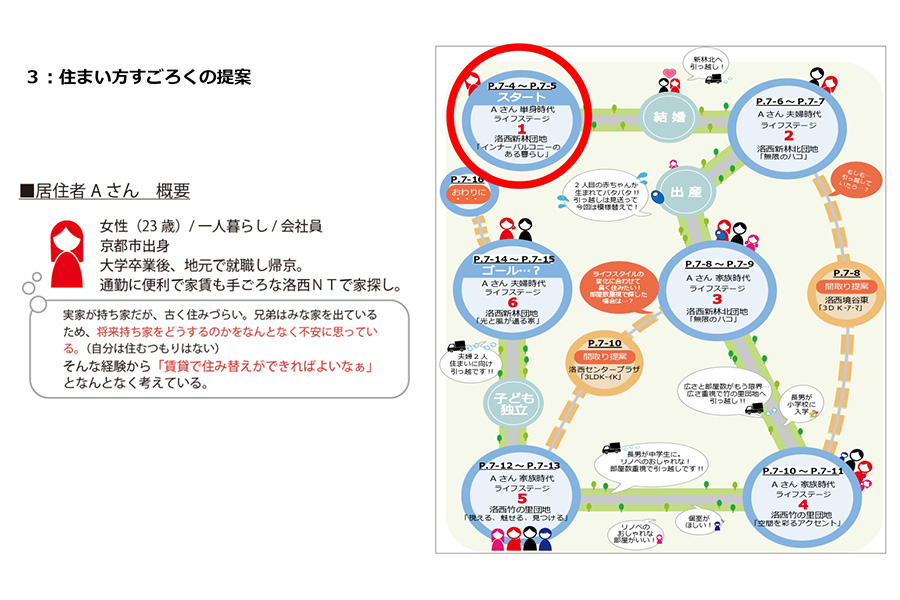 それに対して、「住まい方すごろく」は、井上先生にもご協力いただきながら「京都女子大学×UR」を展開している洛西ニュータウンで考えてみました。