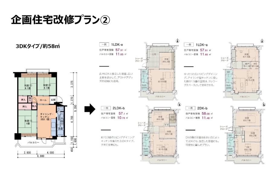 58㎡ぐらいのお部屋は、今だとゆとりがある1LDKとか2DK・コンパクトな2LDKになるかなと思いまます。