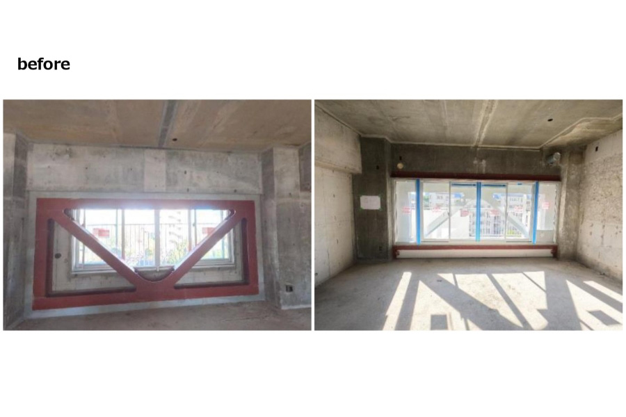 - 古い団地で耐震性の不足があったので、2年前に、耐震改修工事として鉄骨のブレースを入れる工事をしました。 ブレースを入れるため、内装を全部取らないといけないお部屋がかなりの数出てしまいました。そのため、元の間取りにあまりこだわらずに新しくリノベーション住戸を作ることができたので、ご紹介させていただきます。