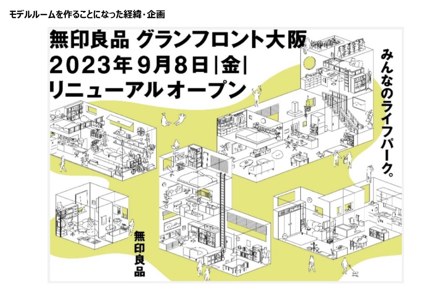 - そもそもの経緯ですが、2023年9月8日に無印良品 グランフロント大阪がリニューアルするタイミングでMUJI×URのモデルルームが店舗内に完成しました。