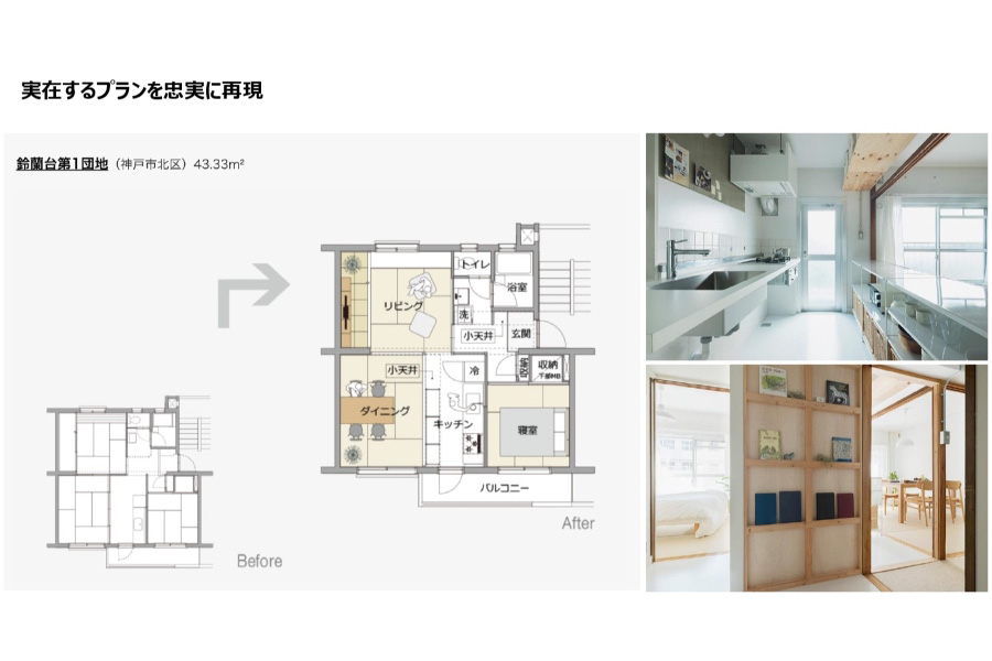 モデルルームで採用されたMUJI×URのプランは、神戸の有馬温泉に近いところにある「鈴蘭台第1」という団地で展開しています。 - 松本