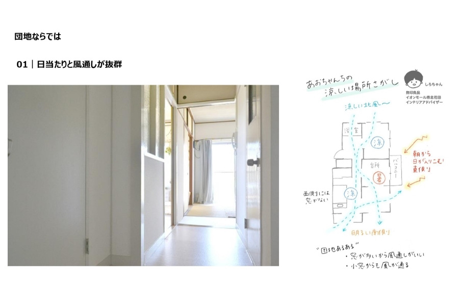 1年間、団地のお部屋のインテリアコーディネートなどをいろいろやっていた時に、光と風の通り方が 他の住戸とは全く違っていました。