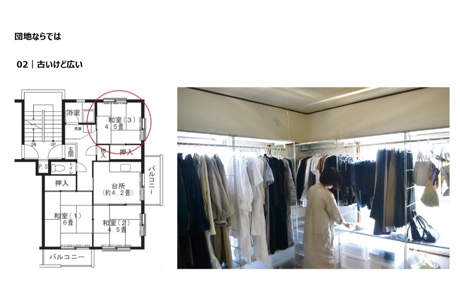 似たような間取りで、全体の面積が50㎡ぐらいのお部屋が沢山あり、少し大きくてキッチンのスペースが広い間取りのお部屋なので使い勝手がよく、モデルルームで再現したサイズのお部屋は積極的に選択していただけないのが現状です。そういったお部屋が関西の中でもいろいろな団地にあり、URとしても先ほど紹介させていただいた「居間心」のような企画を考えたりしています。