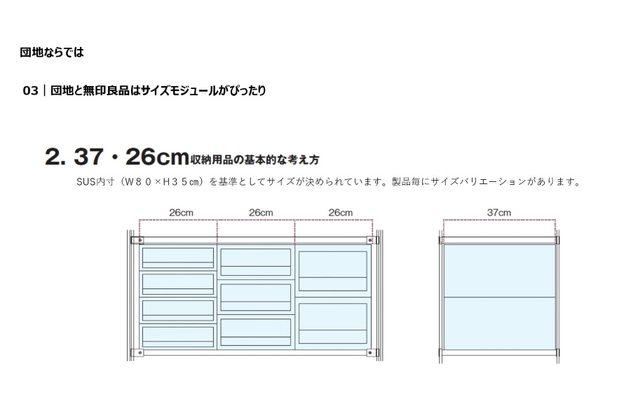 - とっても相性がいいです。 家具だけでなくて、収納用品も長手が37cm、横が26cmとモジュールが決まっています。