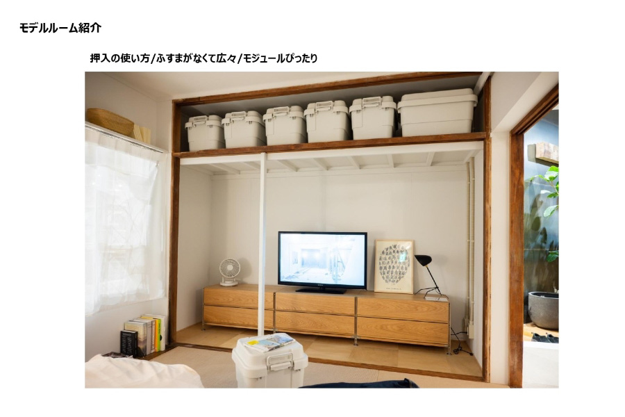 先ほど松本さんの話でもありましたが、ふすまを外して部屋の延長として使っているプランがモデルルームにあり、天袋に収納用品がきれいにそろって入っています。