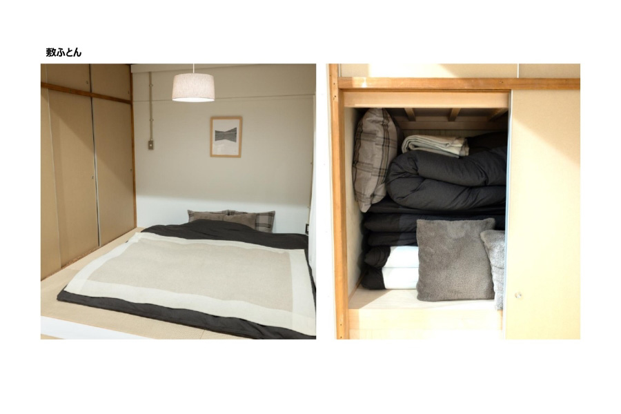 敷ふとんの場合、夜寝るときにおふとんを敷いて、朝目が覚めたらおふとんをたたんで押入れにしまうと思います。