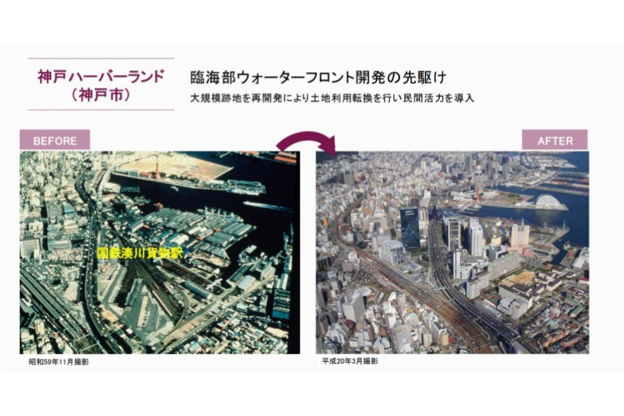 関西圏での事例として、少し古いですが資料にあります「神戸ハーバーランド」があります。元々は国鉄の湊川貨物駅でした。