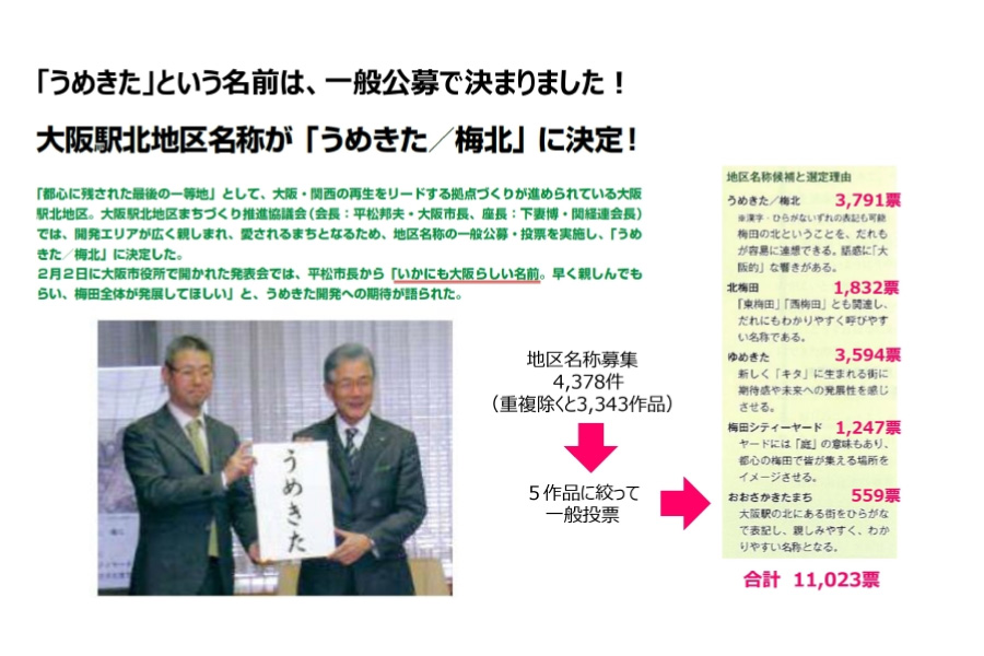 公募なので、もし票数が違っていたらうめきたではなかった可能性があります。