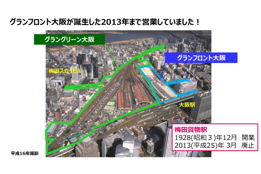 こちらの資料では、グランフロントがまだ建っていないですが、資料のような梅田貨物駅が、約10年前の2013年までありました。