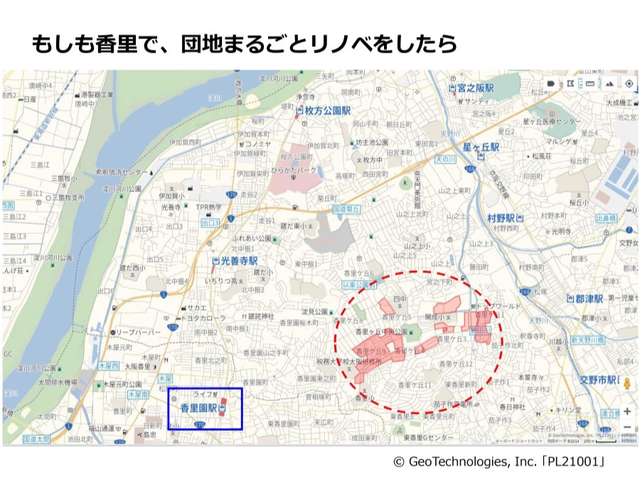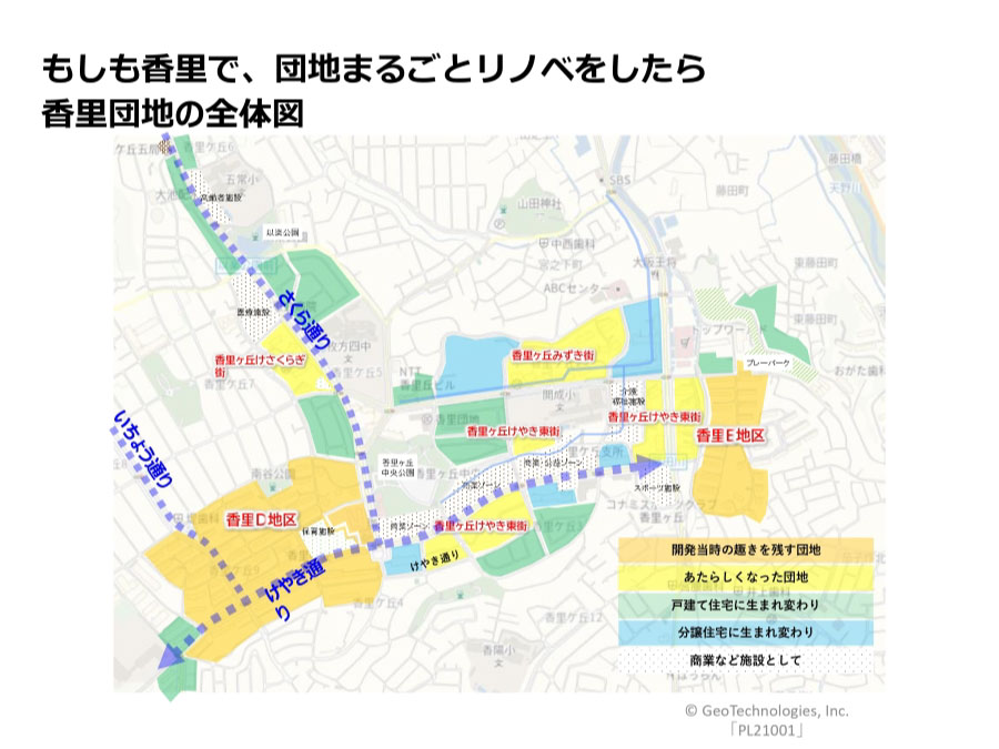- 団地まるごとのイノベーション自体はまだ4団地でしか行っていないのですが、もし香里団地でできたらという案です。
