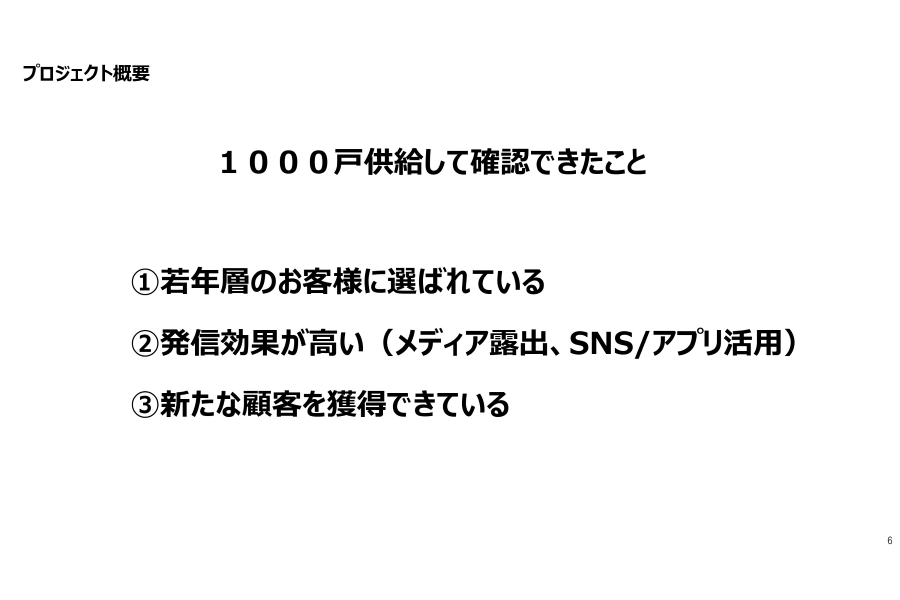 - 1つ目は、若年層のお客さまに選ばれていること、2つ目は発信力が高く、色々なメディアで取り上げていただいています。3つ目は、新たな顧客を獲得できていることです。