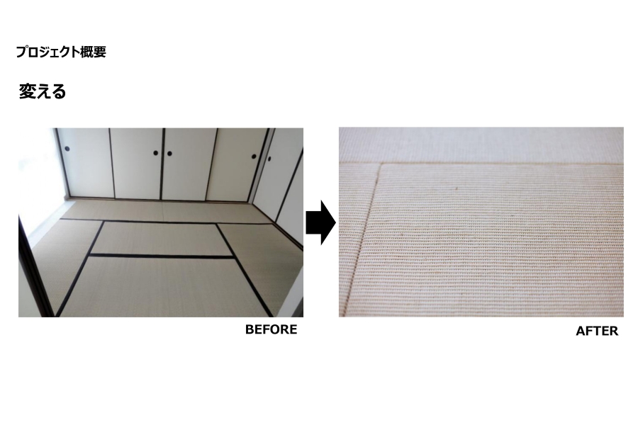 通常、畳はい草を使用したものが多いのですが、MUJI×URではURさんと共同で開発した「麻畳」を使用しています。
