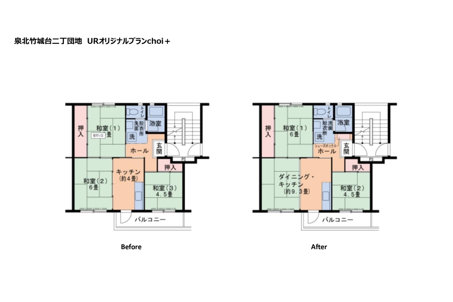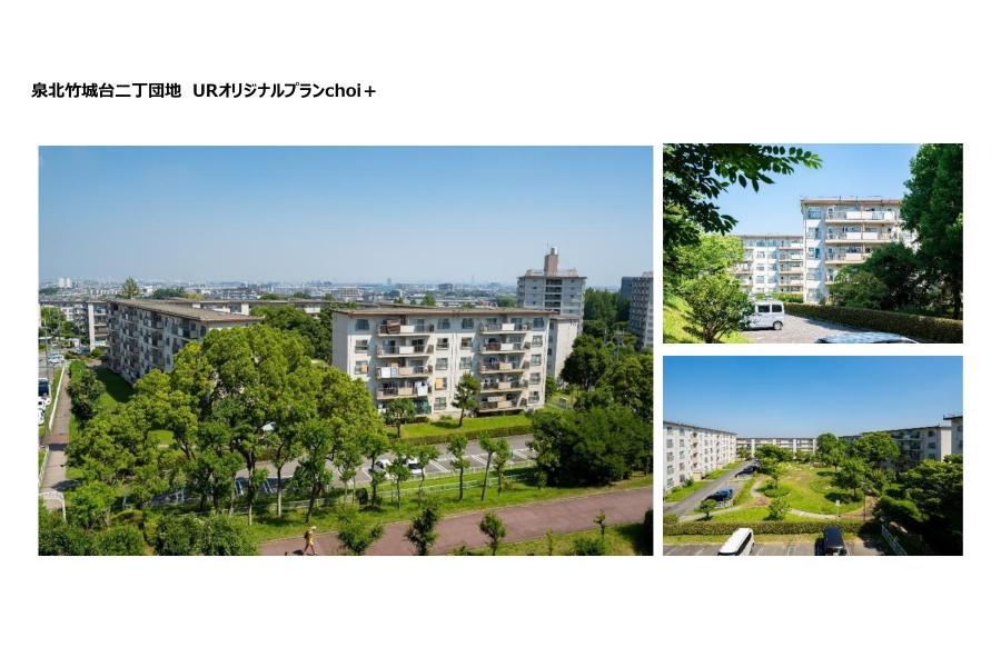 団地のリノベーションのうち、MUJI×URについては先程詳しく紹介をしていただきましたが、URでもオリジナルのプランをたくさんつくっています。その中の1つで、私が担当させていただいている、泉北竹城台二丁団地のプランを今日は紹介させていただきたいと思います。