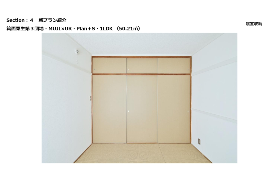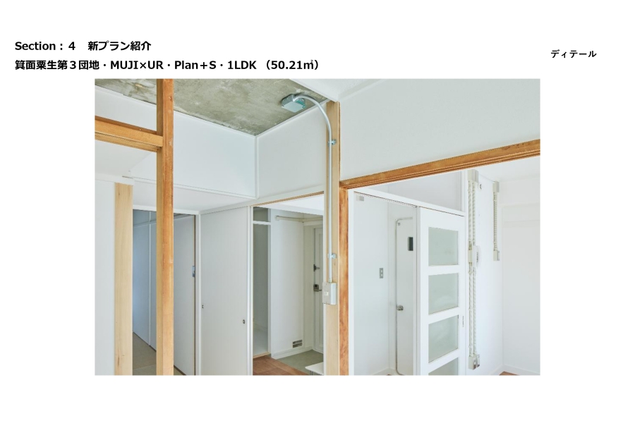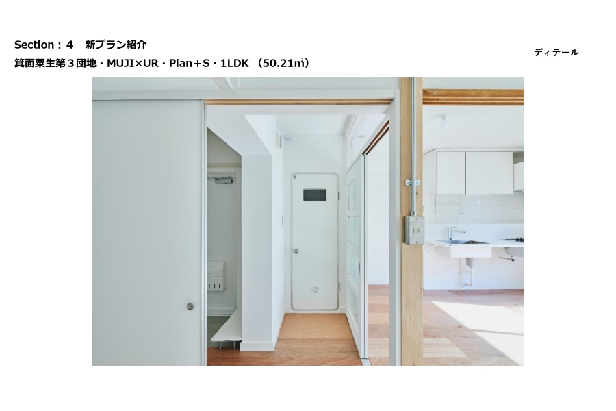 MUJI×URは大きく分けると3つのシリーズで展開をしており、先ほど松本さんから説明のありましたMUJI×UR Planと収納を充実させたMUJI×UR plan+S、昨年からスタートしましたURさんとの共同開発パーツを使用したMUJI×UR Parts Roomとなっています。