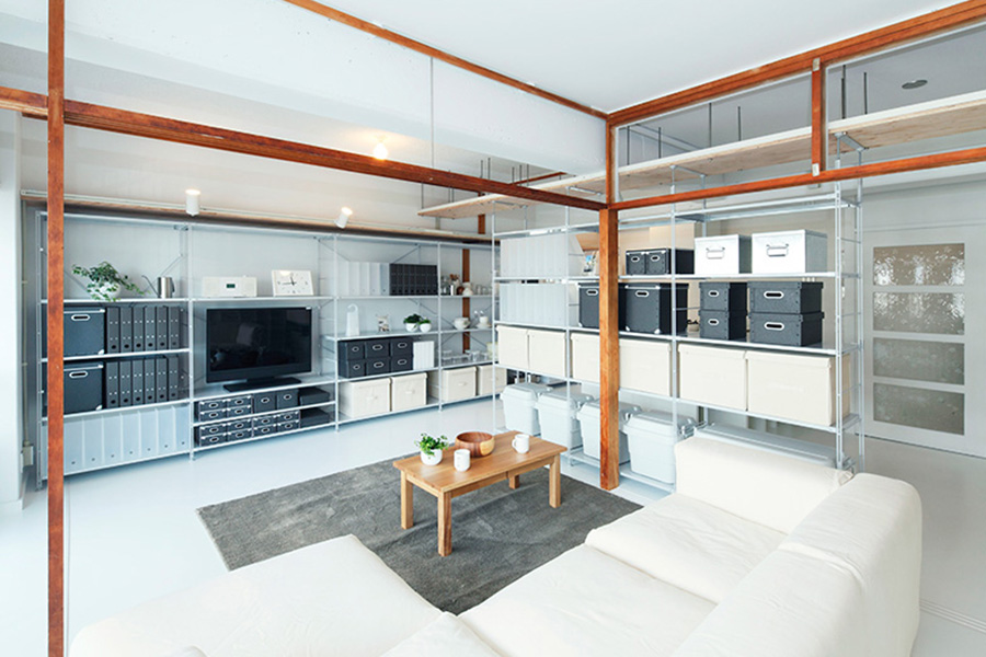 - このように空間をゆるやかに仕切ることができるほか、実用的な間仕切り収納としても使うことができます。