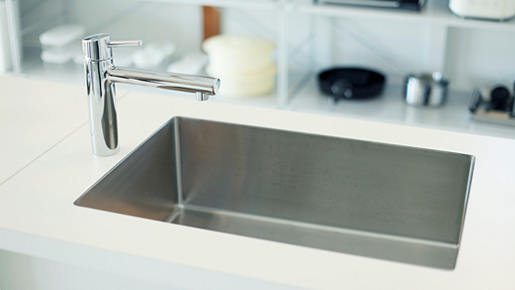 デザインのこだわりを少しお話しますと、天板が白でシンクがステンレスでできているんですが、普通のキッチンには見られないような、非常になめらかな継ぎ目に仕上げました。デザインとして非常にシンプルなものができたと考えています。