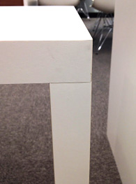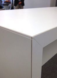 それから、これもデザイン的な部分ですが、天板と脚の付け合わせについては、斜めにカットすることでシャープに見えるように細かいところまで工夫しています。