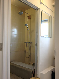 ここは一般的な浴槽はないんですね。他人と暮らすことを考えると、浴槽を置くよりも、リッチな、広めのシャワールームにしたほうがいいのではないかと思い採用しました。このリッチなシャワーになるまでには、何度も試行を重ねました。