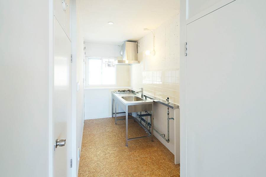 キッチンは独立型。テイストを変えて、色々なバリエーションをみせようということで、むきだしのステンレスキッチンを設置しています。