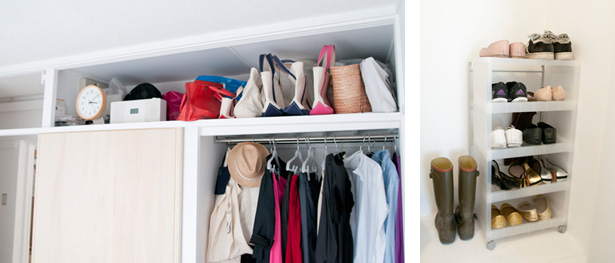 - 玄関の収納もきちんと整頓されています。実は靴は一人平均で16足持っているという統計もありますが、Tさんのお宅はお二人住まいで16足。かなり選び抜かれたものだけが使われています。