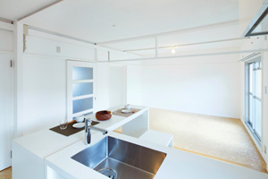 - 小さなマンションでキッチンが大きかったりすると違和感がありますよね。キッチンは毎日料理する場所、家の中心ともいえる場所です。UR団地の中でこういったキッチンをつくれたのはとても良かったです。大きい鍋を並べると入らないというデメリットはこれから改善していきたいですね。