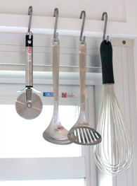 鴨居のところにはS字フックをかけて、キッチンの小物を掛けたりしています。
