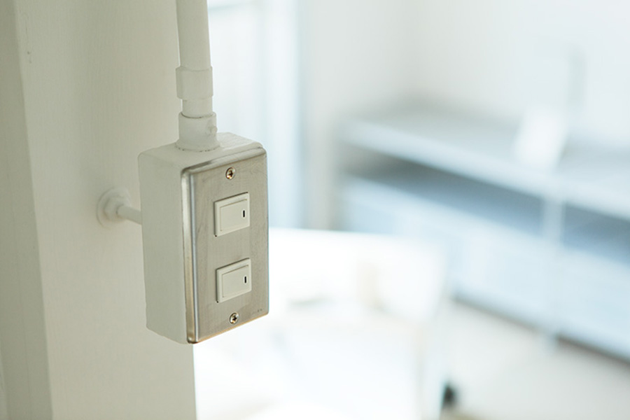 また、もともと壁に埋まっていたコンセントボックスを生かして露出させてスイッチとしました。