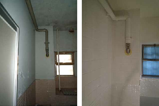 さらに今回は、無印良品さんからの要望もあり、タイルの上に塗装することにもチャレンジしています。タイルの上の塗装はあまり実施しないのですが、今回特に難しい浴室のタイル塗装を実施しました。既存はモザイクタイルで細かい目地ピッチですが、その上に白色で塗装してみると、かなり力のあるデザイン表現となり、ユニットバスでは出せない、味のある浴室空間が創れたのではないかと思っています。