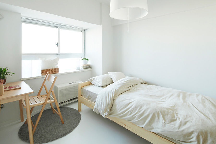 北側のお部屋は、窓が廊下に面したよくあるお部屋なのですが、床や壁は全て白で仕上げていますので、暗い感じがしません。