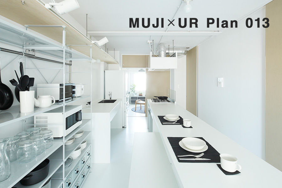 - キッチンまわりのつくり方がMUJI×UR Plan 013とMUJI×UR Plan 014タイプでは全く異なっておりまして、MUJI×UR Plan 013タイプは、「暮らしの中心に大きなキッチン」のテーマ通りですが、一方のMUJI×UR Plan 014タイプは、独立性の高い調理空間となっております。