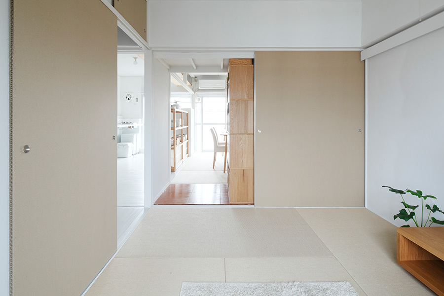 - リビングダイニングのつながり方が緩やかなため襖を閉めると独立した使い方もできます。襖を開けておけば南北の風通しも実現できます。