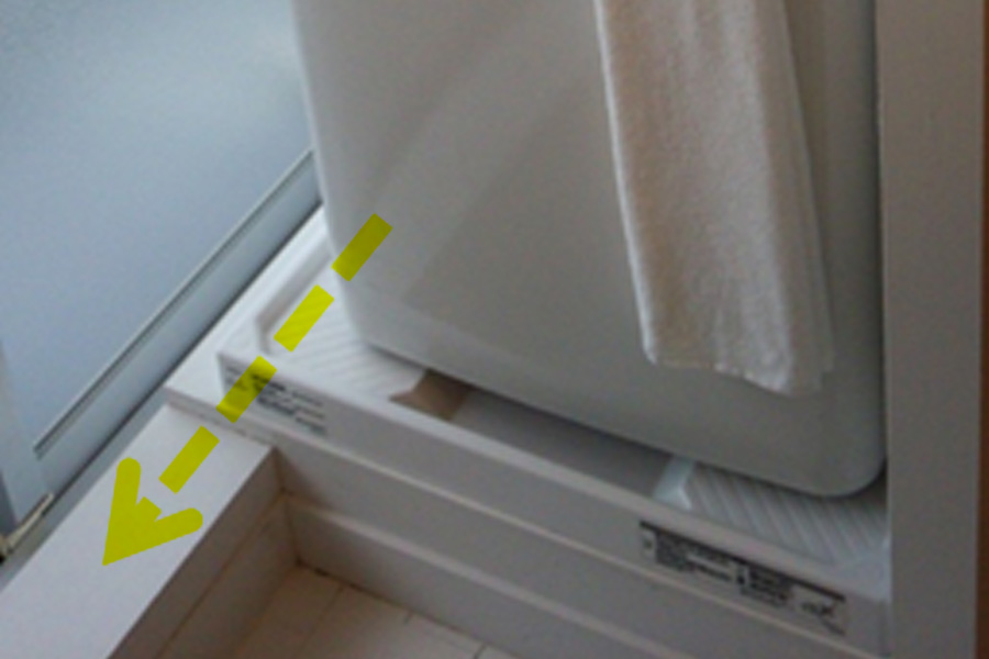 もともと洗濯機置き場がない間取りでしたので、玄関脇に洗濯機置き場を設置しました。浴室に排水する形になります。