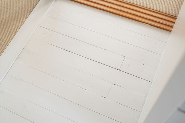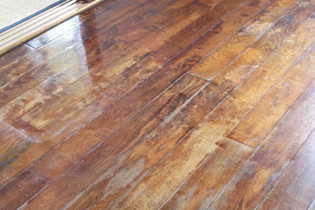 - 下の写真は、フローリングが日焼けしたり経年変化している状態ですが、床材はしっかりしていたので、できる限り活かそうということで上から塗装しました。ちょっとしたでこぼこや古さも味になるのではと考えて積極的にやっていきました。