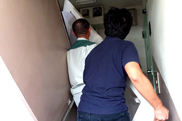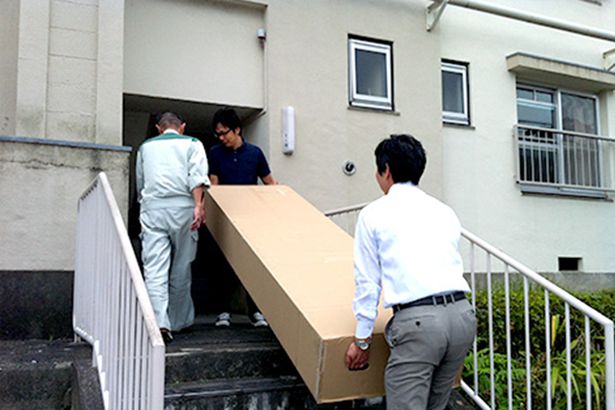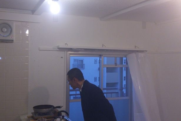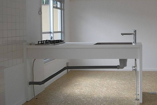 - しかし大きなキッチンは開発したのはいいですが、運んでみたところ階段を回らず、搬入できない。結果、簡易的な滑車を使ってバルコニーから搬入して事なきを得ました。高層タイプの団地だと無理ですね。もしそうなったら、キッチンを2つに分ける等の工夫が必要になります。