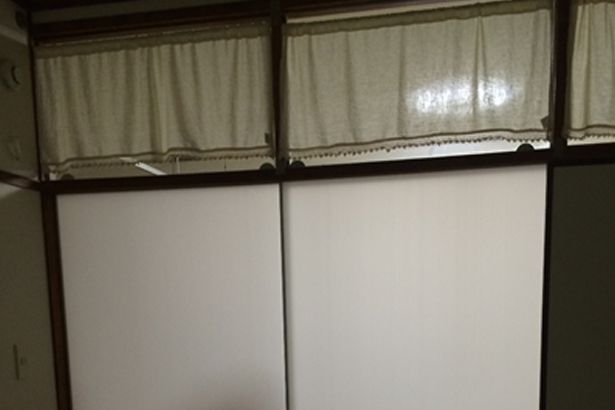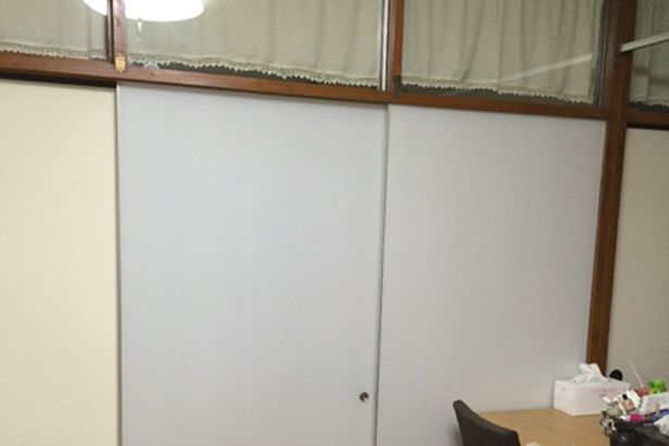 アルミの縁に、素材が半透明のふすまです。玄関や廊下が暗くなるので、これをつけることで部屋の光を通して玄関や廊下を明るくするというものです。