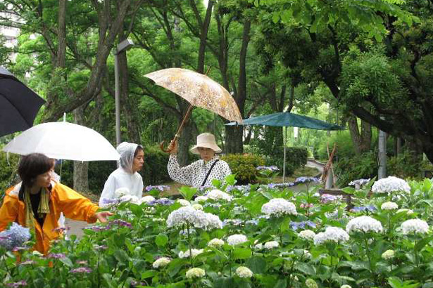 あじさいを咲かせる会:こぼれび通りでアジサイを育てるボランティアグループ