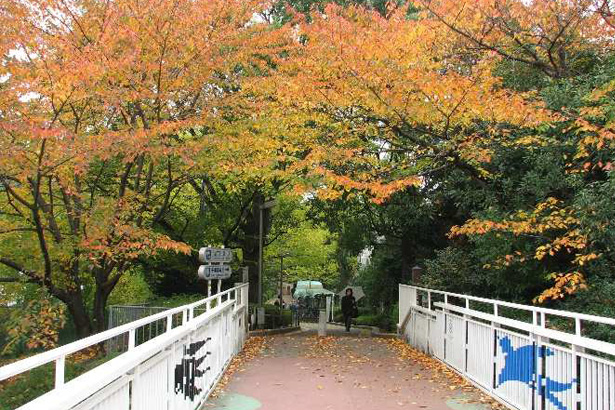 住区を巡る歩行者専用道路は完全な歩車分離になっています。千里中央から出て千里中央駅に戻るかたちにコの字型にぐるりと歩行者専用道路が設けられており、その間は車に出会わないように計画されています。