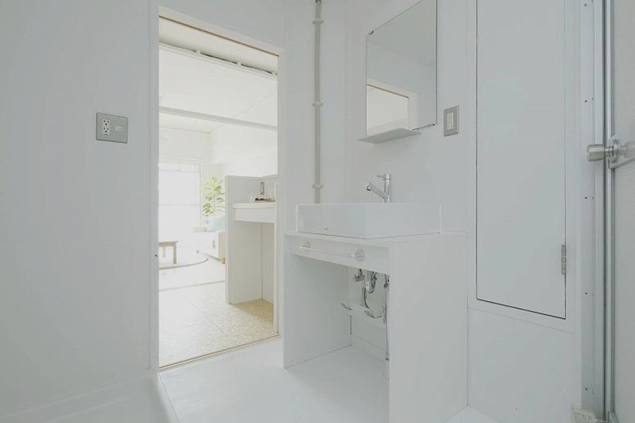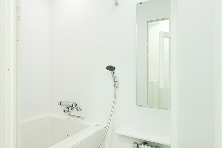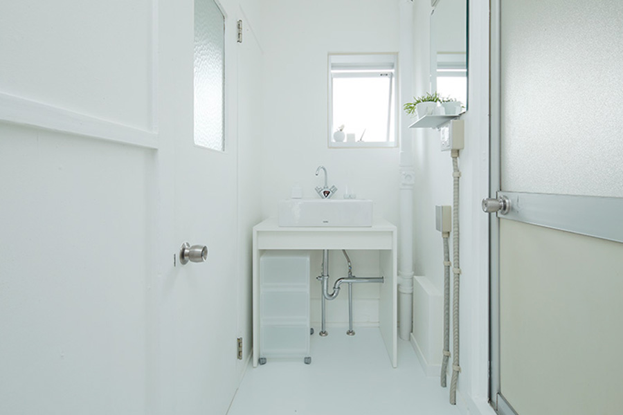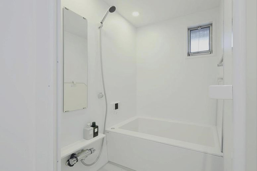 - 同じく水まわりで、今度はお風呂について。ユニットバスではないケースが多く、狭くて使いづらいものも多かったため、スペース的に対応可能なところはユニットバスに変更するようにしています。世間一般的なユニットバスのデザインは、模様や色の付いたものがほとんど。そこで、余計なことはしないという提案の1つとして、私たちは真っ白なユニットバスをデザインしています。