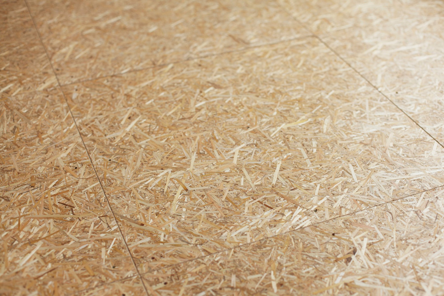 - こちらは、麦わらパネル。フローリングを変える時に用います。これまで廃棄されていたわらを、ギュッと樹脂で圧縮してパネルにしたもの。ビスは脳天打ちすることで、打ち所がわかり、汚れたらビスを外して1枚だけ取り換えるということもできるようにしています。こちらも同様に、汚れが染み込みにくいコーティングをしています。