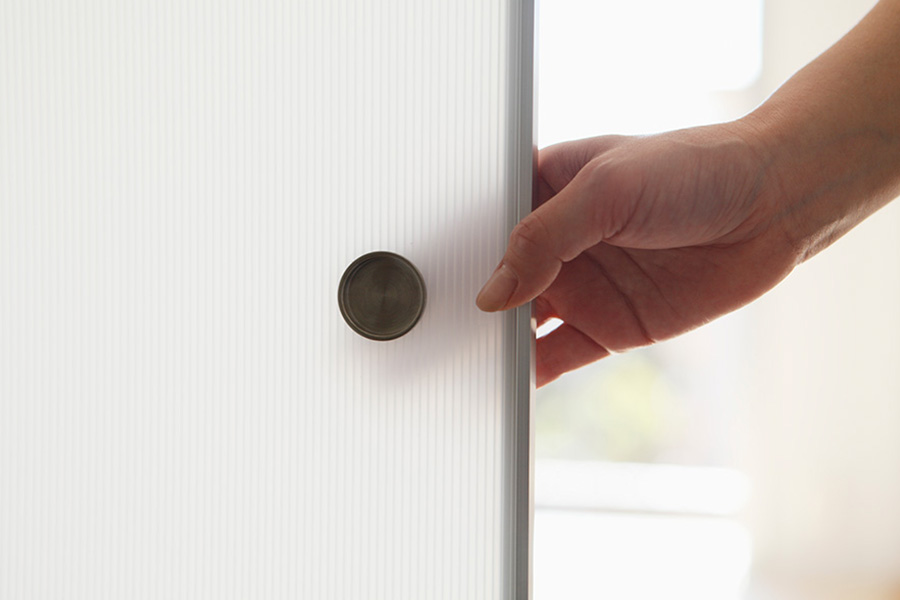 続いて、半透明ふすま。手を添えれば、うっすら透けて見えるような素材感です。“視線を通さず、光を通す襖”として開発しました。一見コストが掛かっていそうに見えますが、実は梱包材などでも使用される半透明のアクリル板を両側面に貼っているだけ。こちらも強度の調整を行いました。どうしても暗くなりがちな玄関まわりに、半透明のふすまを用いることで、玄関も明るくなるという仕掛けです。