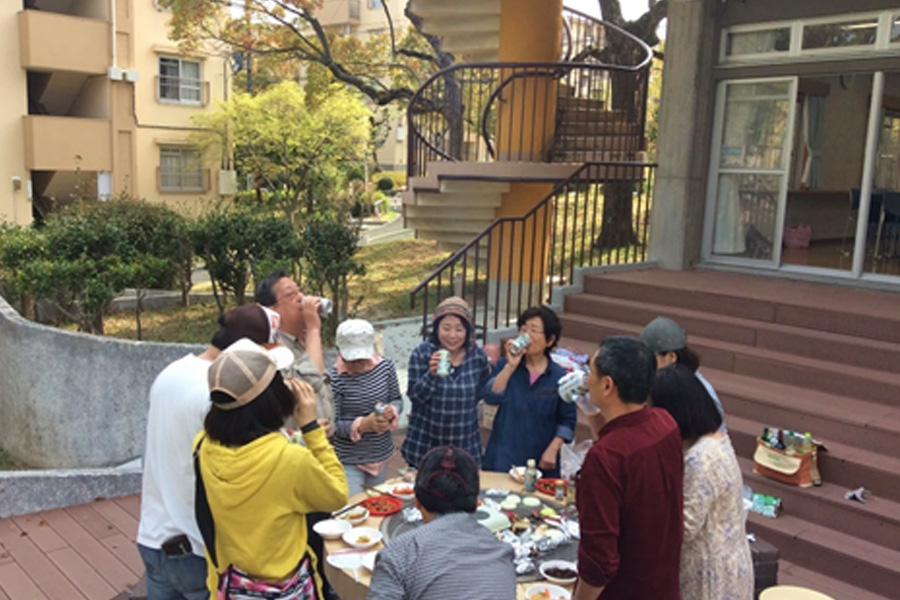 - さらにBBQコーナーもつくりました。通常のURではBBQは禁止されているので、かなり特殊な事例ではありますが、住人さんとご一緒に、新しい挑戦も進めています。