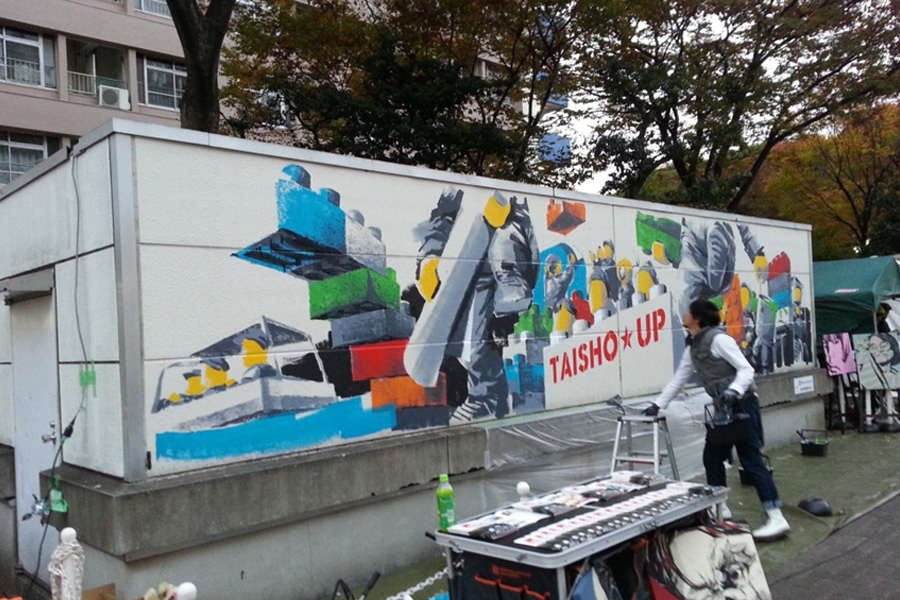 - 大正区にある千島団地では「TAISHO★UP」というイベントを開催。大正区さん・壁紙屋本舗さん・URがコラボして、DIYの拠点を団地につくろうというもので、イベント当日は団地内が雑貨村のような雰囲気になっていました。また同日、ライブペイントを実施、壁紙屋本舗さんの商品を見られるスペースや、DIY工具が使用できる工房、DIYブロガーさんのつくったモデルルームを設置するなど、自分らしい暮らしが実現できるという団地の新たな印象を届けていきました。