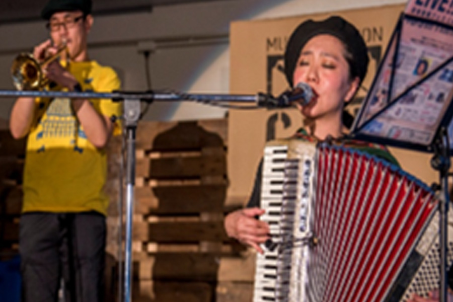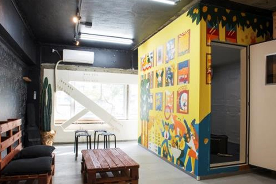 - こちら、森之宮団地。耐震補強のため、壁に大きな鉄骨ブレスを入れることになり、住宅として使用できなくなった部屋がありました。もともとこの団地はカラオケクラブの活動が活発だったため、防音ルームをつくり、住人たちで使える音楽スタジオとして活用することに。今では、この部屋の利用率が非常に高く、想定していたカラオケクラブの方々の利用だけでなく、若い方が楽器演奏の練習場としても活用してくださるようになりました。