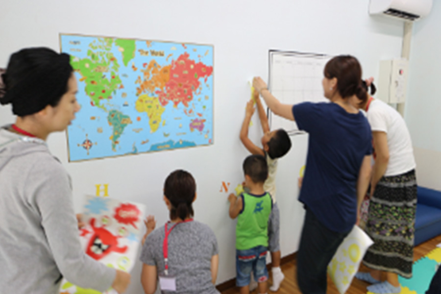 - さらに、ママさんやキッズにも優しい集会所の使い方ができればということで、泉北城山台二丁団地では、ママとお子さんたちがDIYしてみんなで楽しめる空間をつくりました。