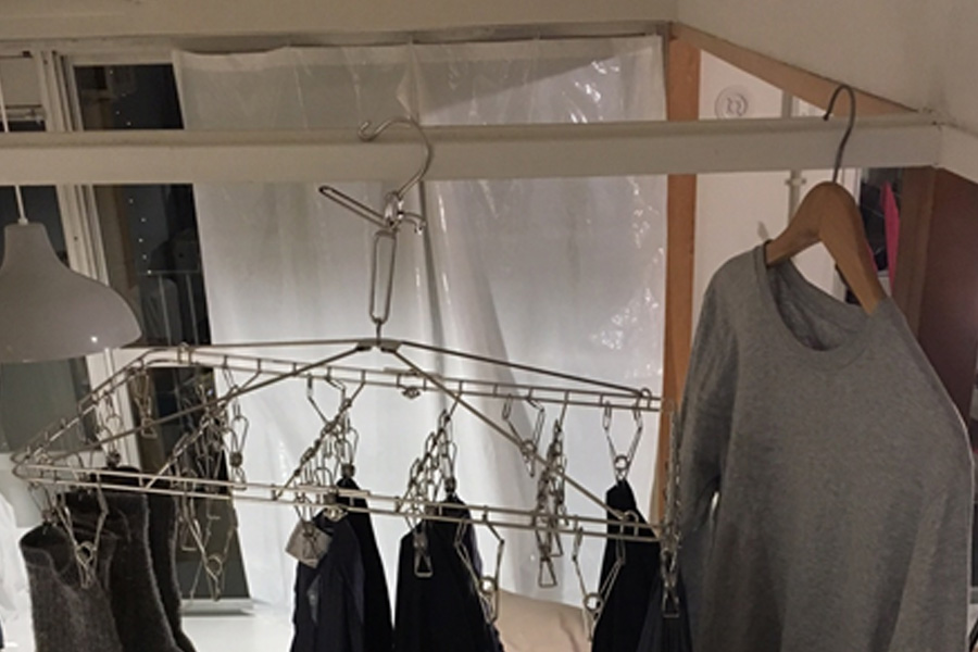 木枠を残しているのはこだわりです。空間にアクセントをつけるだけではなく、照明をつけたり、洗濯物を干したりしています。