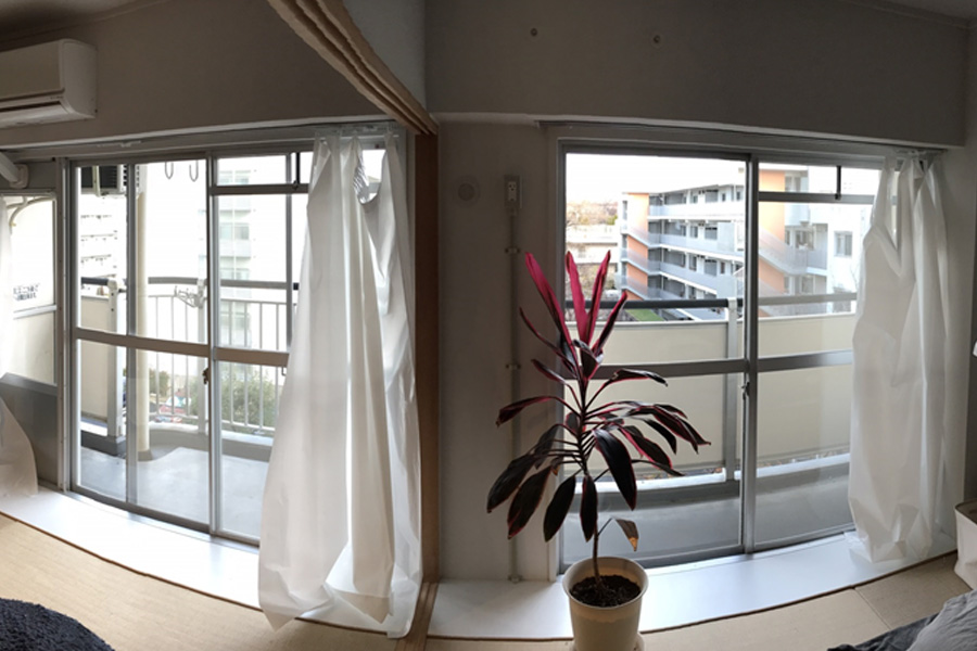 団地の部屋は窓が大きいなぁと住んでみて感じます。そして団地間の距離があるので、日中はカーテンをしなくても大丈夫。明るくて気持ちがいいんです。