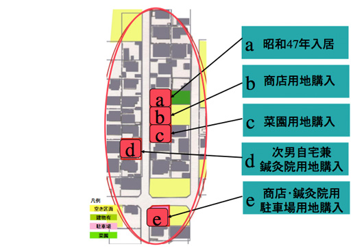 この奥さんが鋭かったのは、この団地には住宅しか建っていないということに気づいていたことでした。いつもは近所のおばちゃんたちはお店がないとぼやいているから、ここで商売をやったら儲かるんじゃないかということで、商店を建てたら本当に儲かっちゃって、そのお金で、隣の空き地を買って、そこで家庭菜園をして、家庭菜園でまたお金が貯まっちゃったから、子どもを鍼灸学校に通わせることができて、子どもが鍼灸学校を卒業して鍼灸院を開きたくなったので親に相談したら、お向かいの土地が空いているから、あそこで開きなさいよということで、お向かいに子どもの自宅兼鍼灸院ができて、鍼灸院にお客さんがつくようになって、商店にもお客さんがつくようになって、車を置くところがないわねということになって、角の空いている土地を買って、今度は駐車場にしていったんです。この流れ、なんだかわらしべ長者みたいですごいですよね。